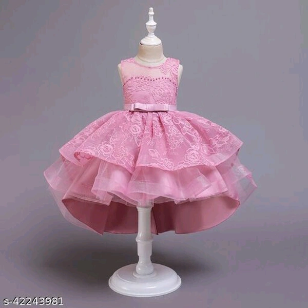Hopscotch Girls Polyester Sleeveless Bow Applique Party Dress in Pink Color (947868)