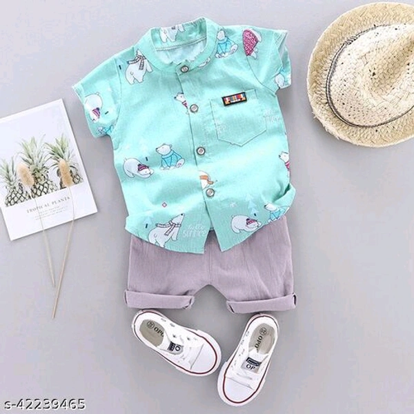 Hopscotch Boys Cotton and Polyester Half Sleeves Stylish Animal Printed Shirt and Short Set in Blue Color (969210)