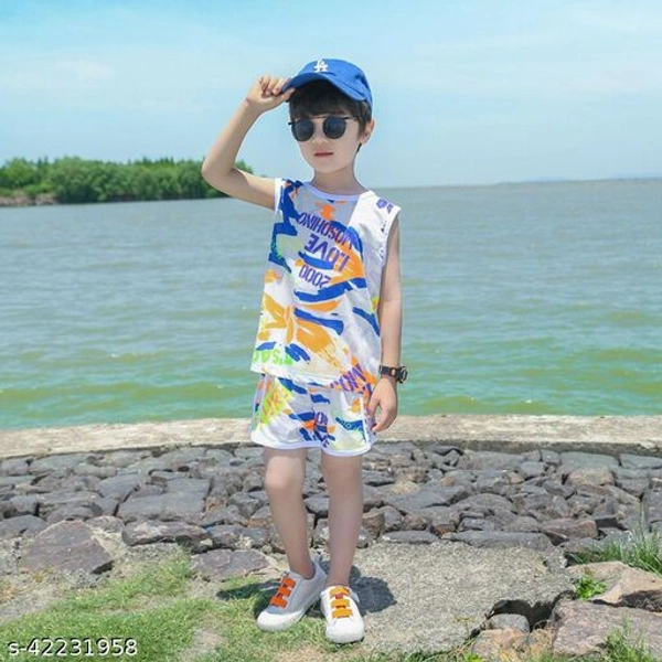 Hopscotch Boys Polyester Sleeveless All Over Printed Short set in Orange Color (1047507)