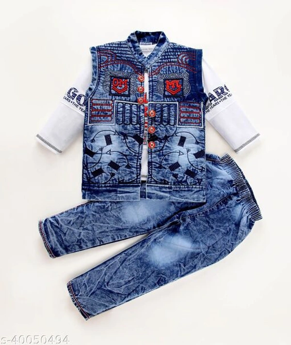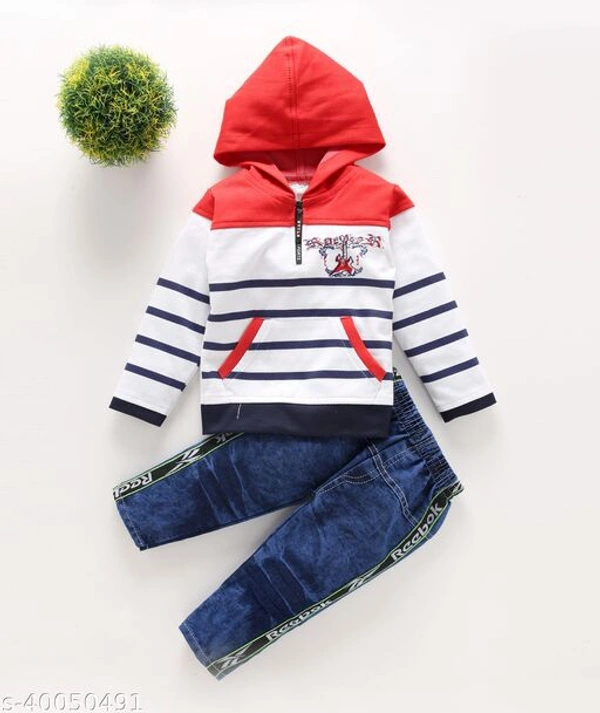 white hoddy clothing sett Top Fabric: Hosiery Bottom Fabric: Denim Multipack: Single Sizes: 1-2 Years Country of Origin: India