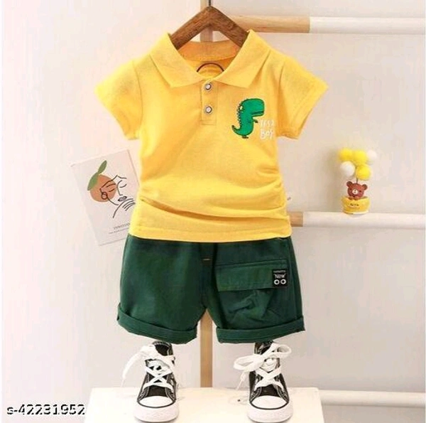 Newborn Boys Cotton Yellow Half Sleeves With Green Short