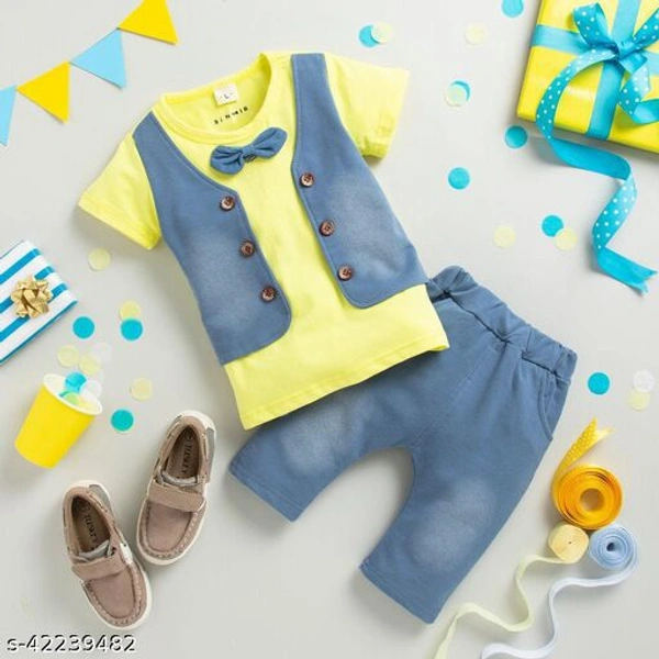 Newbron Boys Cotton Spandex Waistcoat T-shirt Attached With Bottom Set