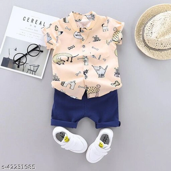Hopscotch Boys Cotton and Polyester Half Sleeves Animal Art Printed Shirt and Shorts Set in Multi Color (920038) Top Fabric: Polycotton Bottom Fabric: Polycotton Sleeve Length: Short Sleeves Top Pattern: Printed Bottom Pattern: Printed Multipack: Single Add-Ons: No Add Ons Sizes: 9-12 Months, 12-18 Months, 18-24 Months, 2-3 Years A must have from our collection! We make sure your kids look stylish & cute while still being comfortable.Sort their Outfit with us. It's time to update your little ones wardrobe with something charmingly trendy. If they got it, let'em flaunt it! Country of Origin: China