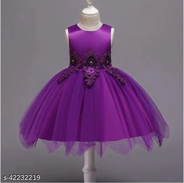 Hopscotch Girls Cotton and Polyester Sleeveless Applique Floral Party Dress in Purple Color (1035597)