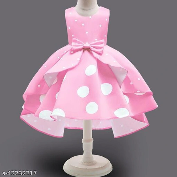 Hopscotch Girls Cotton and Polyester Sleeveless Applique Polka Dots Party Dress in Pink Color (904878)