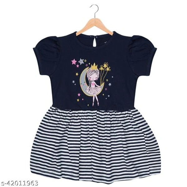 Poppy Kids Girls/Baby Girls Stylish Cotton Navy Moon Dress/Frock (Pack of 1)