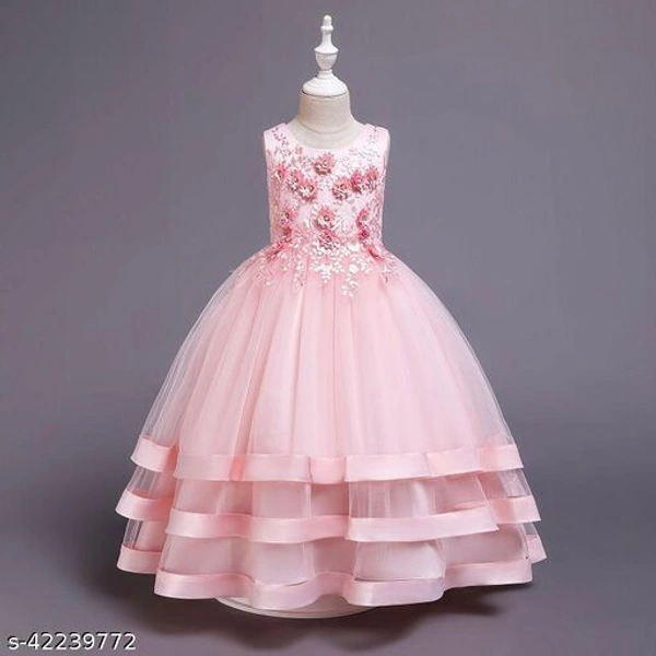 Hopscotch Girls Cotton and Polyester Sleeveless Applique Floral Net Gown in Pink Color (966079)
