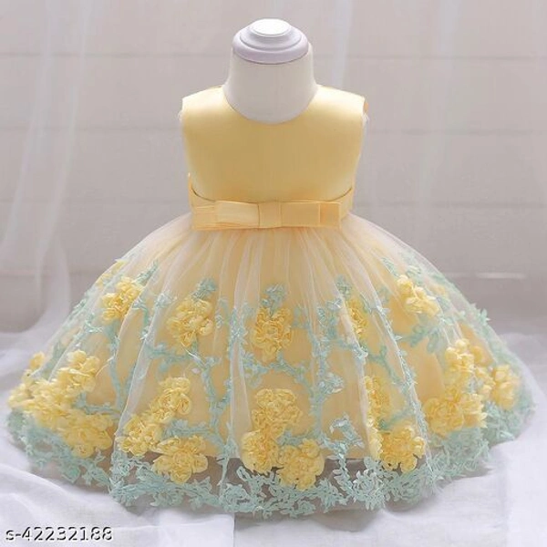 Hopscotch Girls Viscose, Polyester Flower Embroidery 3/4 Length Party Dress in Yellow Color (662747)