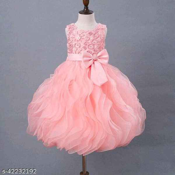 Hopscotch Girls Cotton and Polyester Sleeveless Solid Applique Floral Party Dress in Pink Color (908826)