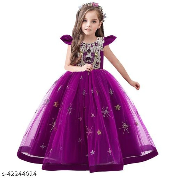 Hopscotch Girls Viscose And Polyester Half Sleeves Applique Star Gown in Purple Color (976701)