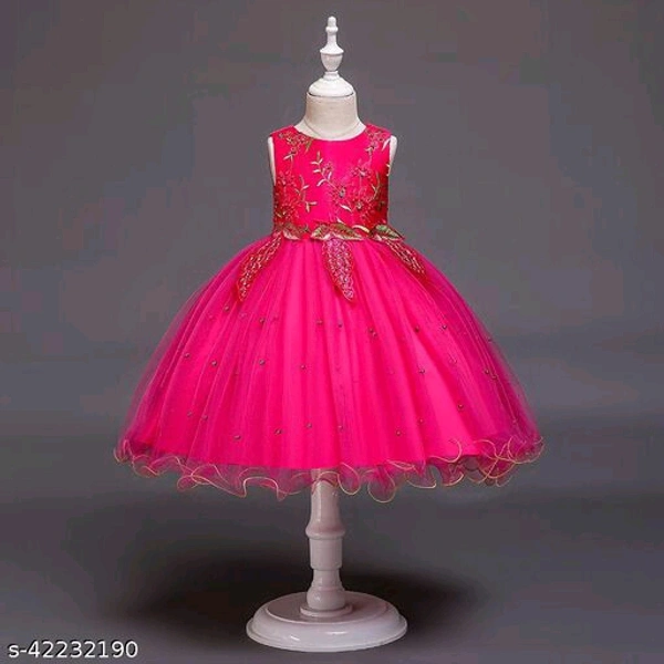 Hopscotch Girls Polyester + Viscose Floral Embroidery Solid Sleeveless Party Dress in Fuchsia Color (827551)