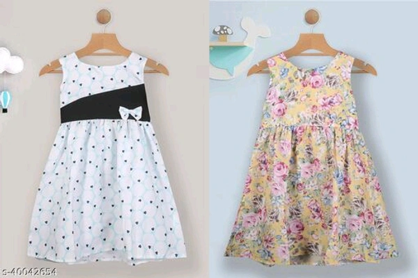 Kid's Special Combo Pack of 2 Unique Digital Printed Frock with Back Tie Ups Fabric: Crepe Sleeve Length: Sleeveless Pattern: Printed Multipack: Pack Of 2 Sizes: 4-5 Years (Bust Size: 24 in, Length Size: 25 in) 5-6 Years (Bust Size: 26 in, Length Size: 26 in) 1-2 Years (Bust Size: 22 in, Length Size: 19 in) 3-4 Years (Bust Size: 24 in, Length Size: 22 in) 6-7 Years (Bust Size: 27 in, Length Size: 26 in) 7-8 Years (Bust Size: 28 in, Length Size: 28 in) 2-3 Years (Bust Size: 23 in, Length Size: 20 in) Refresh her casual roster with this floral-print fit & flare dress. This sleeveless capsule's put up together with a round neck, floral trims at waist and a flared hemline. Team it with her best pair of flats for a playful weekend brunch with family Country of Origin: India