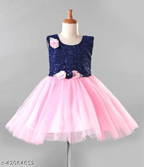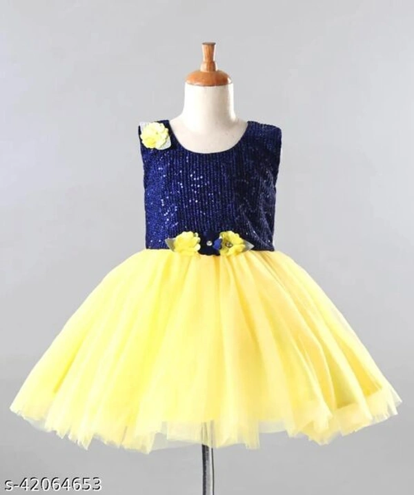 Small girl's party wear dress/frock. Girl's festive wear frock comes with comfortable sequinned lycra fabric having net bottom line